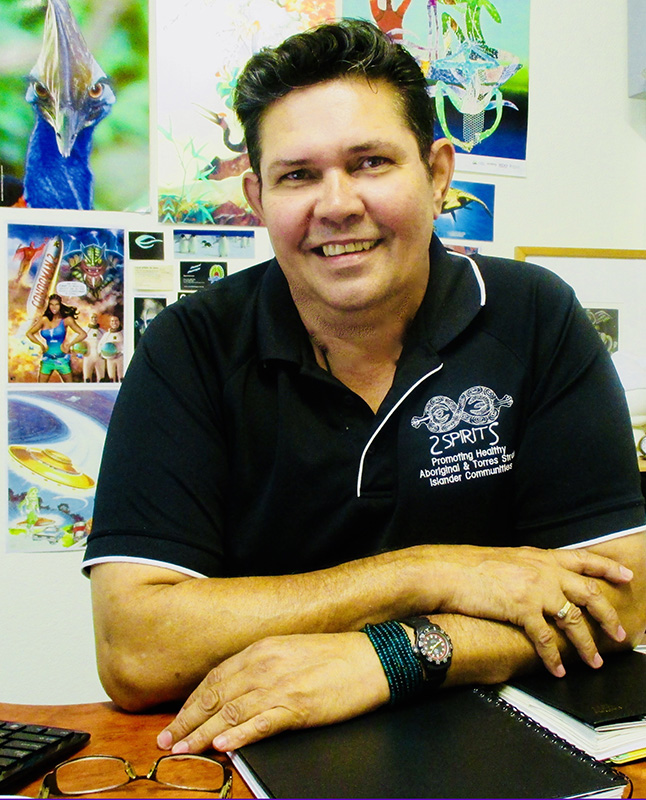 Arone Meeks had both a traditional and formal education, having been taught by his grandfather and other relatives before going to study at the City Art Institute in Sydney. He later returned to Queensland to study with various tribal Elders, including those of the Lardil people of Mornington Island. Meeks values this combination of training and experience; his work employs both traditional images and themes arising out of this concern with the issue of land rights, sexuality, cultural values and belonging to place. A founding member of Boomalli Aboriginal Artists Co-operative, he won an Australia Council Fellowship to study in Paris and went on to exhibit throughout Europe and North and South America.