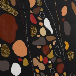 Sharon works mainly with acrylic paint on canvas but also enjoys ceramics, sculpture and weaving. She is inspired in her artistic journey as an Aboriginal woman from the Wiradjuri Nation. She is constantly returning to her heritage and culture and her art work in its many forms is a constant affirmation of her identity.