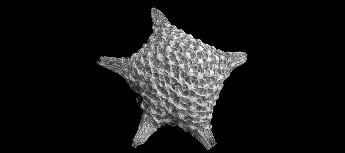 Sand is an intriguing material and until you look closely you may not appreciate how each grain is truly unique and might not be what you expect. After carefully looking at individual grains in a handful of sand under an optical microscope Gail made a selection of star-shaped grains that were carefully mounted for microCT scanning at the Microscopy Australia facility at the University of Sydney. From these scans a 3D model of each of the grains was produced and printed at an enlarged scale for inclusion in her artwork – a bamboo star-map of the constellation Tagai.