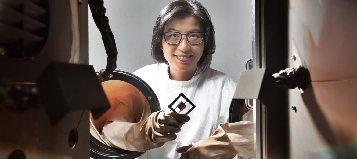 Prof. Ho-Baillie’s research focuses on multi-junction solar cells, which offer higher efficiency than traditional single-junction silicon cells. Solar cells convert solar energy into electricity using semiconductors. While silicon is the semiconductor material being used in the current solar technology, perovskites have emerged as a promising alternative for multi-junction solar cells. By stacking perovskite on top of silicon, her team have developed tandem solar cells that achieve 30% power conversion efficiency, independently certified. At the time of reporting, hers was one of the eight labs in the world to achieve this, and the first in Australia. “There isn’t much room for silicon to improve because its theoretical limit is only 30% – but for perovskite–silicon tandem, it is 40%” said Prof. Ho-Baillie. Another of her materials, a perovskite–CIGS tandem solar cell on a flexible steel substrate, achieved a world record-breaking efficiency of 18.1% in March 2024.