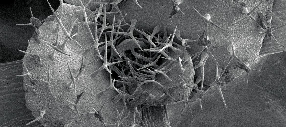 Leaves usually develop in a spiral pattern (above), with an abundance of spiky hairs. The experimental plants (below) lack the spiral leaf arrangement and hairs. Instead, the surface is much bumpier with cells more closely resembling the part of a flower where pollen attaches for pollination. This was confirmed when pollen came in contact with the lumpy cells of the experimental plant, “inflating” like it would during pollination.