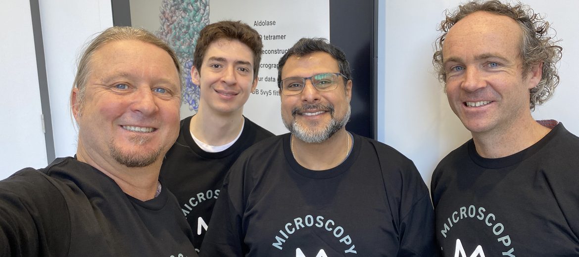 L-R Dr James Bouwer, Dr Gilberto Casillas Garcia, Dr Azdiar Gazder and Dr Simon Brown from the Molecular Horizon's CryoEM facility and UoW Electron Microscopy Centre