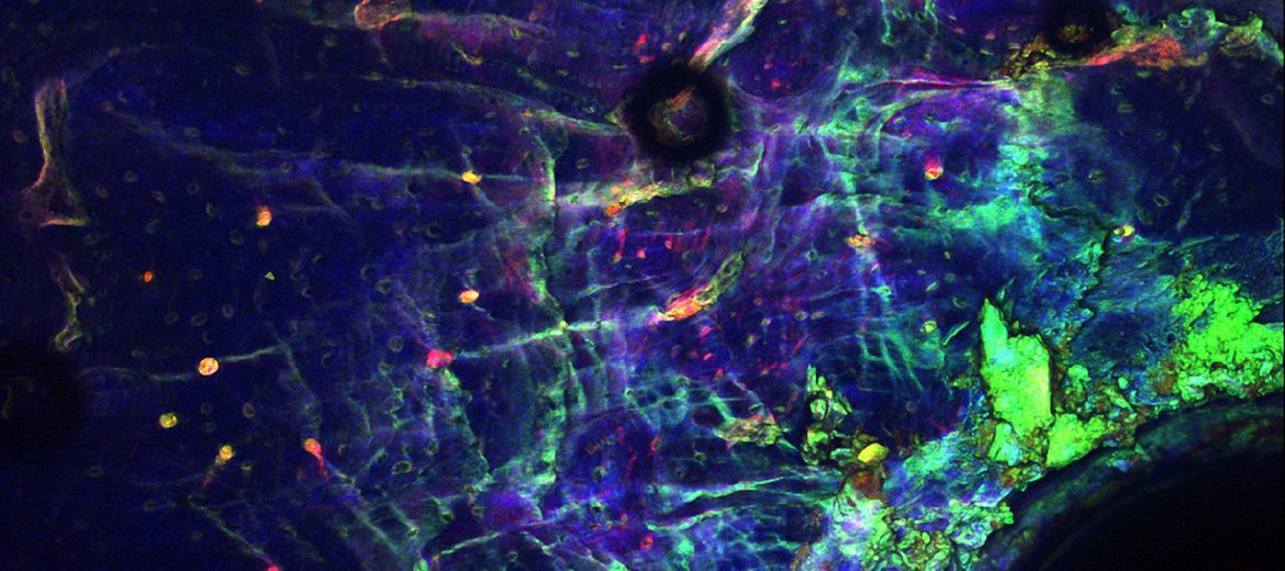 Clinical observations suggest a higher failure rate when the screws are put into areas where the compact bone is thicker. Dentist and postgraduate student Dr Melissa Nguyen at the University of Adelaide (UoA) is studying this at the tissue level by using confocal microscopy in the AMMRF (now Microscopy Australia) at the UoA. Stresses caused by the insertion of screws cause microdamage to the bone in the form of microcracks. This causes the bone to remodel itself around the screws. First, specialised cells remove damaged areas before other cells move in to deposit new bone. The initial removal of the damaged bone is the cause of wobbly screws. Dr Nguyen has found a network of cracks emanating from the screw insertion points and her early results appear consistent with the clinical observations.